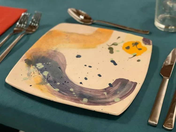 This fantastic bespoke project was inspired by the abstract expressionist paintings of Sam Francis. I was commissioned to create this set of dinner plates for a local Oxfordshire dinner club. With this exciting project, I was able to literally bring the art of fine dining to the plate!