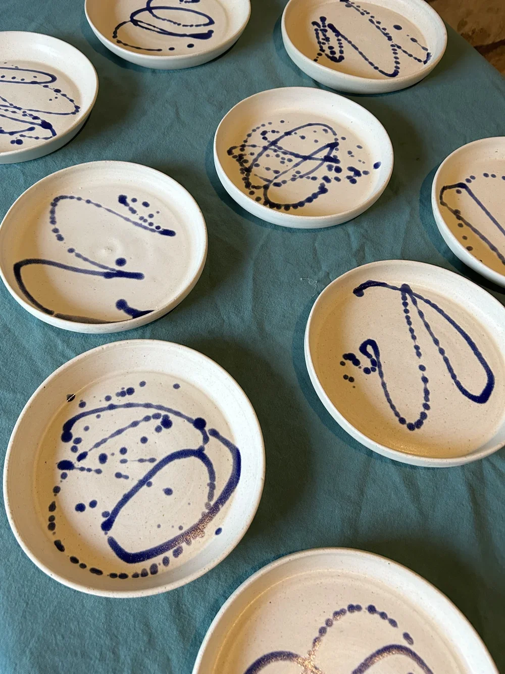 If you are looking for a set of personalised plates for a special dinner party, wedding or other occasion, please don’t hesitate to get in touch. Together, we can design the perfect shape and style of plate, and combine it with a glaze and pattern that is both meaningful and show-stopping!